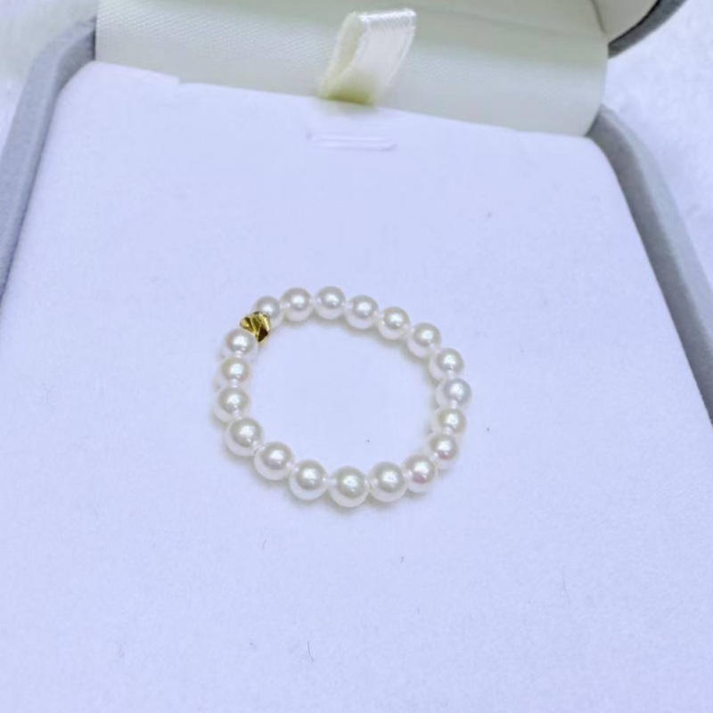 แหวนมุกน้ำจืดธรรมชาติจูจี้ ขนาด 3-4 มม. แทบไร้ตำหนิ สวยงาม ประณีต ขนาดเล็ก ใช้งานได้หลากหลาย สร้อยข้อมือแบบโซ่เส้นเล็กสำหรับผู้หญิง