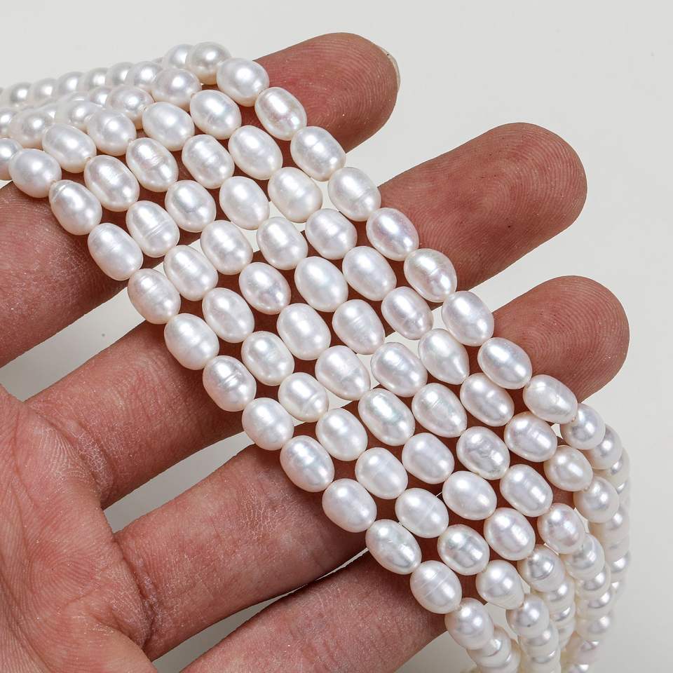 ไข่มุกน้ำจืดธรรมชาติจูจี้ ขนาด 5-6 มม. รูปทรงข้าวสาร สำหรับงาน DIY เครื่องประดับทำมือ ไข่มุกหลวม ขายส่ง