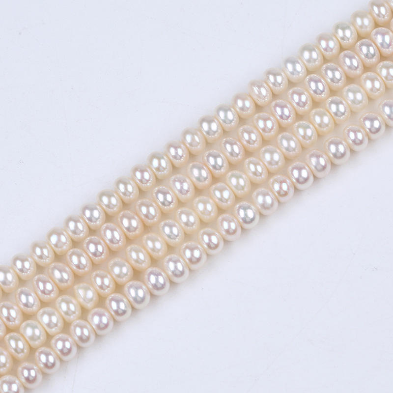 ไข่มุกน้ำจืดสีขาวธรรมชาติ ขนาด 7-8 มม. แบบแบน สำหรับทำเครื่องประดับ DIY ขายส่ง