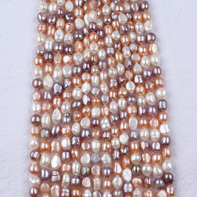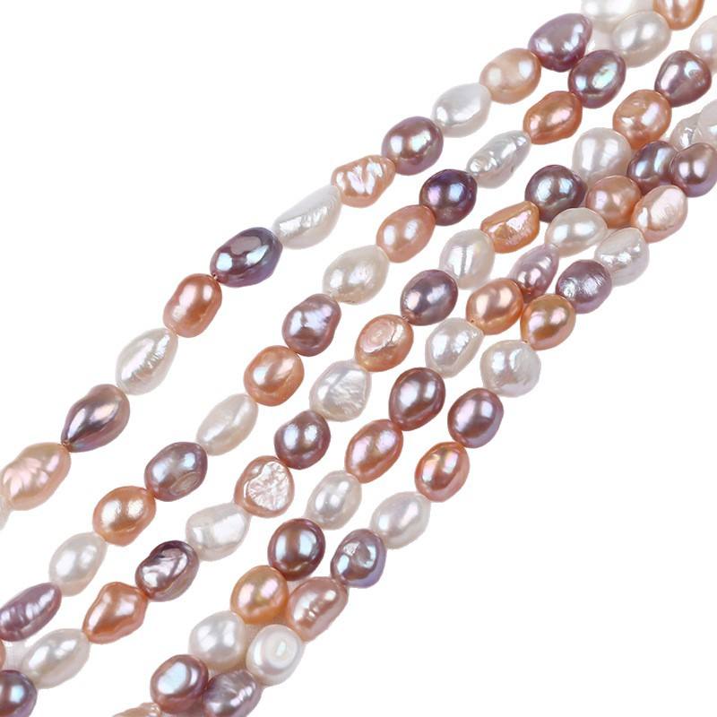 ไข่มุกน้ำจืดธรรมชาติจูจี้ ขนาด 8-9 มม. รูตรงสองด้าน สีผสม รูปทรงบาร็อคไม่สม่ำเสมอ