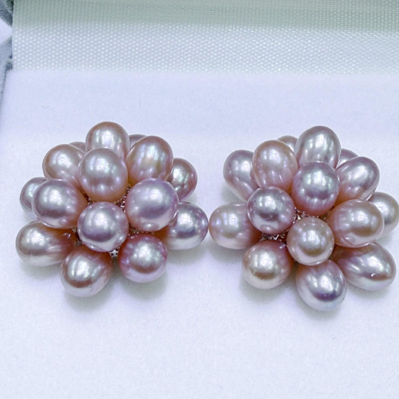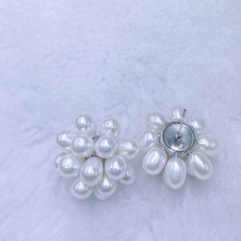 ต่างหูมุกน้ำจืดธรรมชาติจูจี้ ขนาด 5-6 มม. ทรงป๊อปคอร์น สีขาว แทบไร้ตำหนิ ประดับมุกหลายเม็ด ดีไซน์เรียบง่าย