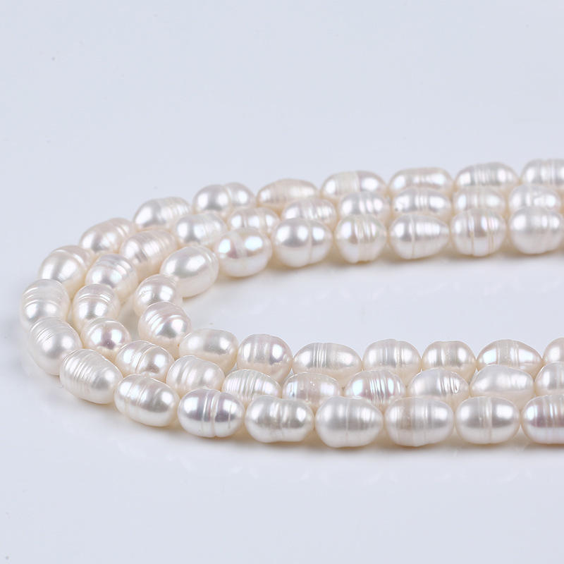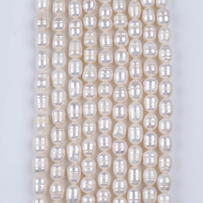 ไข่มุกน้ำจืดธรรมชาติจูจี้ ขนาด 7-8 มม. สีขาวอมชมพู รูปทรงเมตร สำหรับงาน DIY ขายส่ง