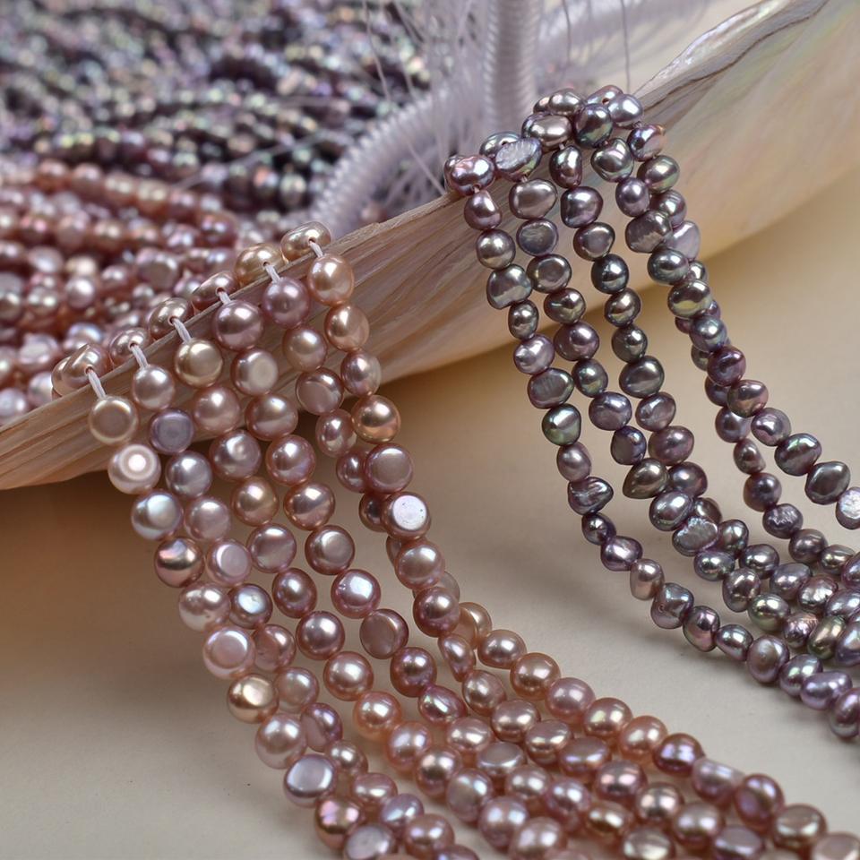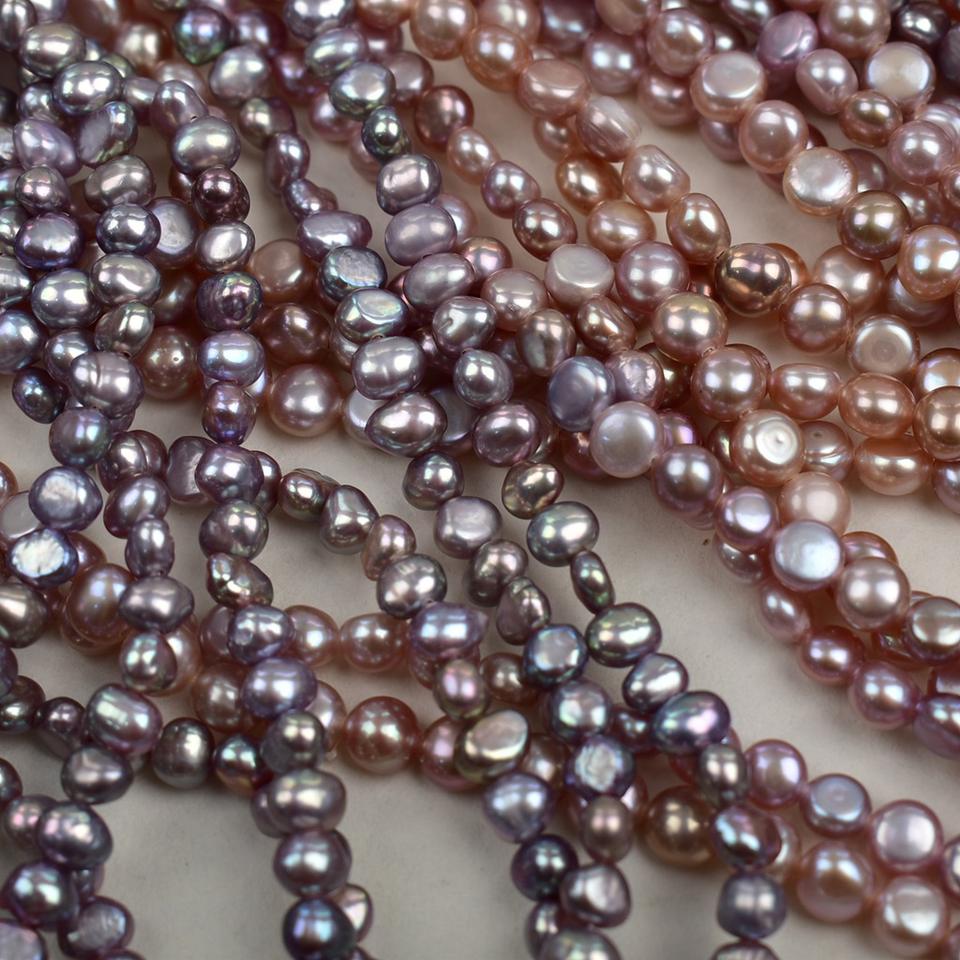 สร้อยคอมุกน้ำจืดธรรมชาติทรงบาร็อคสองด้านสีม่วงอ่อน ยี่ห้อ Zhuji แบบกึ่งสำเร็จรูปสำหรับงาน DIY พร้อมมุกสีขาวกระจาย