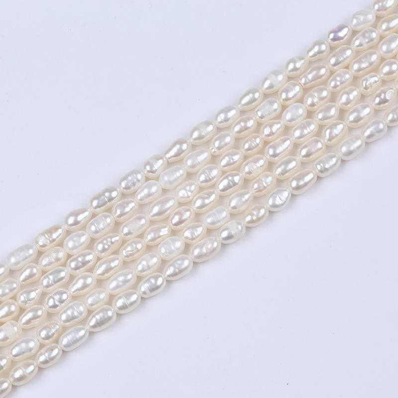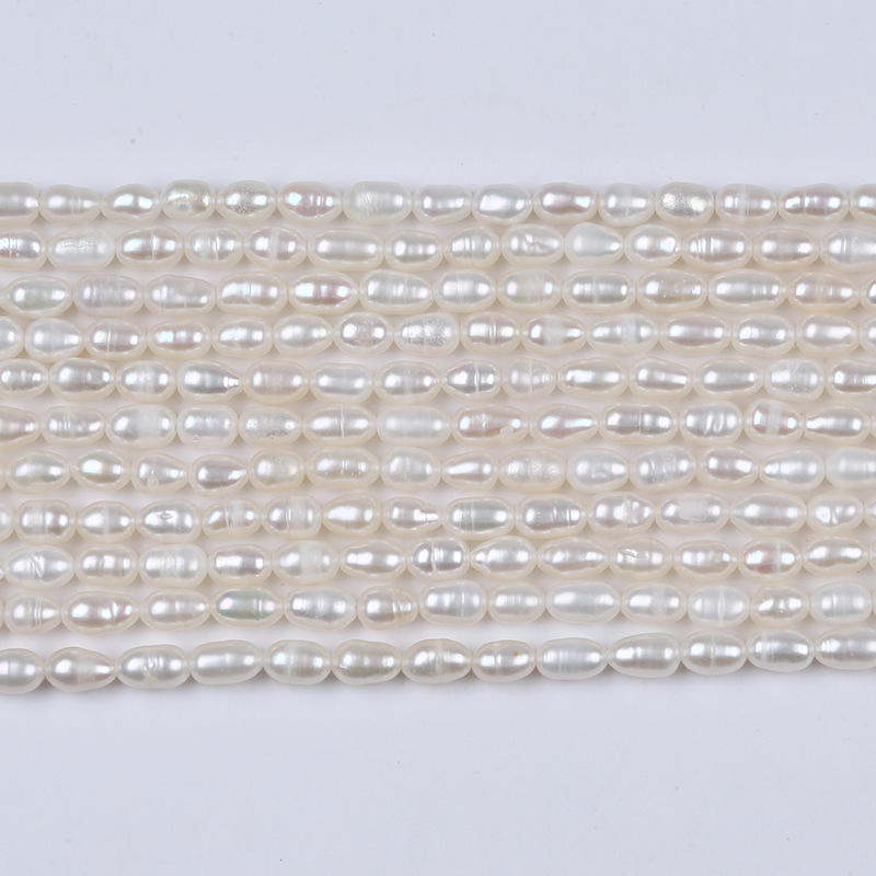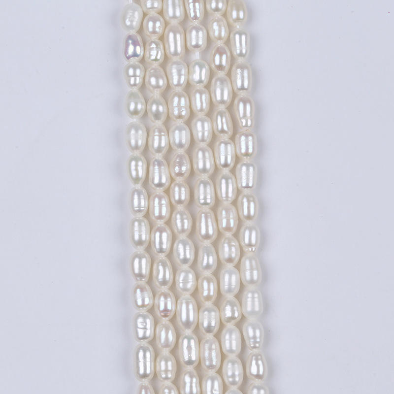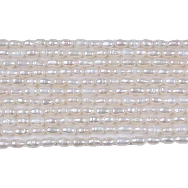 ไข่มุกน้ำจืดธรรมชาติจูจี้ ขนาด 4-5 มม. รูปทรงเมล็ดข้าว รูตรง สีขาว สำหรับทำสร้อยคอหรือสร้อยข้อมือ DIY
