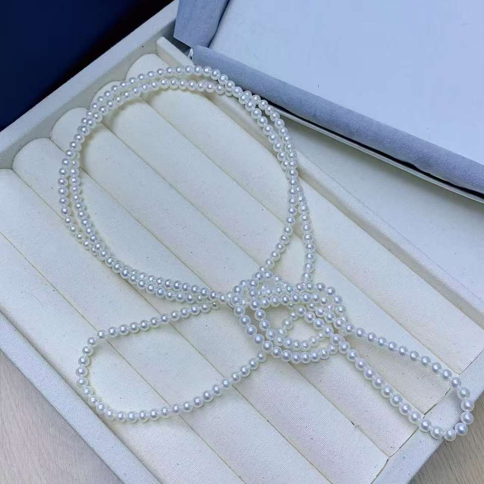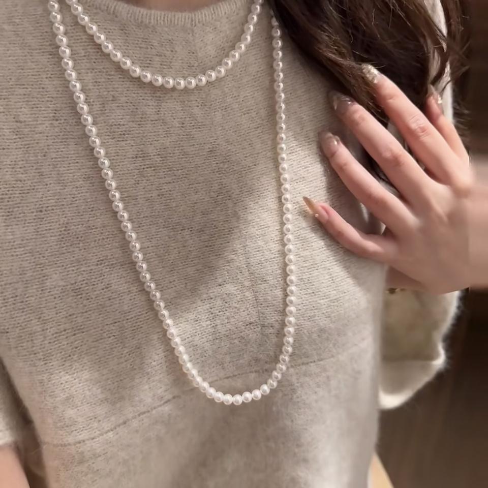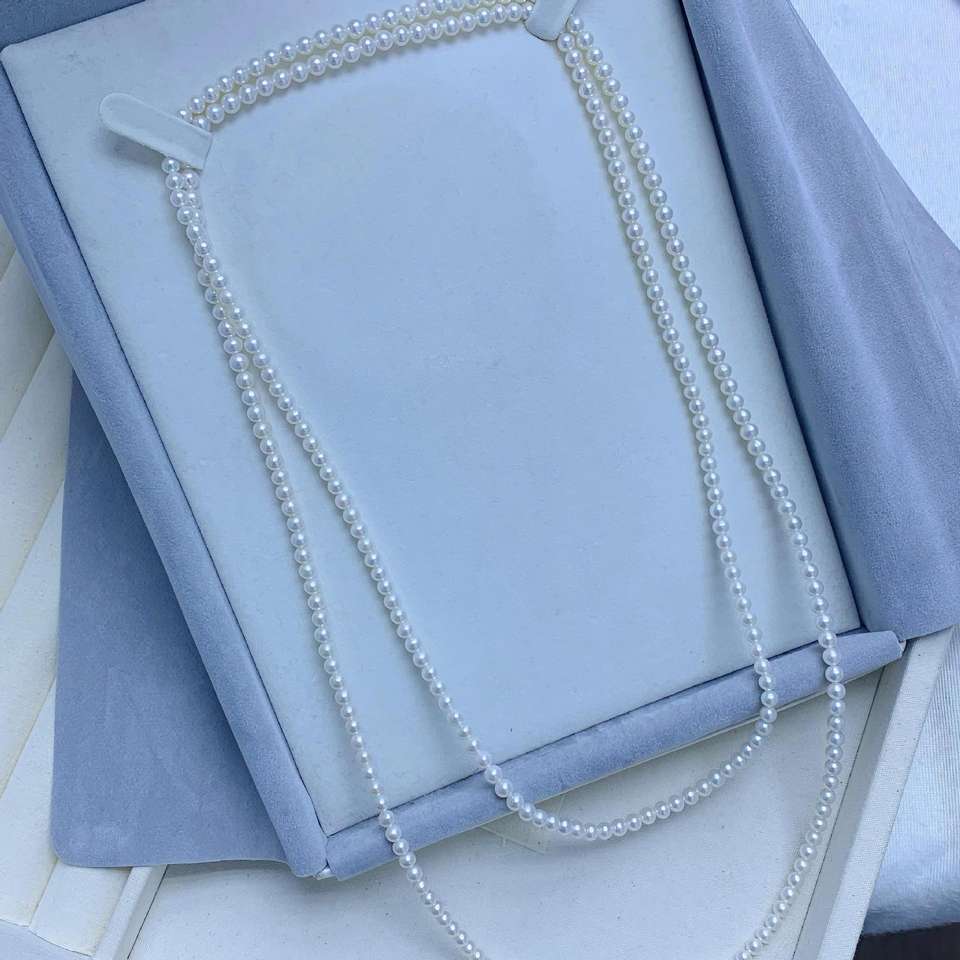 สร้อยคอมุกน้ำจืดธรรมชาติจูจี้ 3.5-4 มม. สร้อยคอแบบออโรร่า หลายชั้น ดีไซน์เรียบหรู