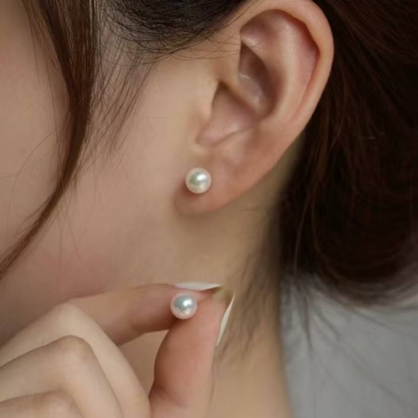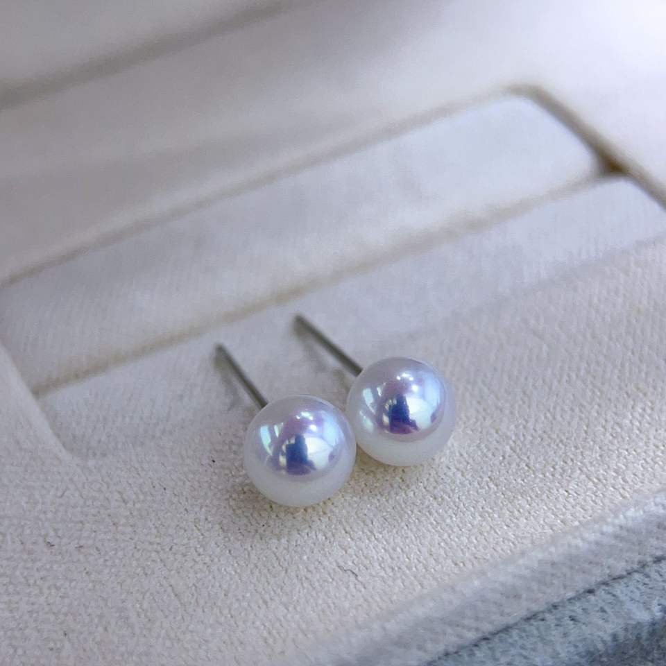 ต่างหูมุกน้ำจืดธรรมชาติจูจี้ ออโรร่า ทรงกลม ไร้ตำหนิ ขนาดเล็ก เครื่องประดับหู คุณภาพเทียบเท่ามุกอะโกย่าจากน้ำทะเล