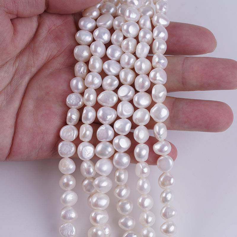 สร้อยคอมุกน้ำจืดธรรมชาติจูจี้ ขนาด 8-9 มม. รูด้านข้าง สองด้าน แสงสว่าง งานกึ่งสำเร็จรูป ทำด้วยมือ สีขาวชมพู ขายส่ง