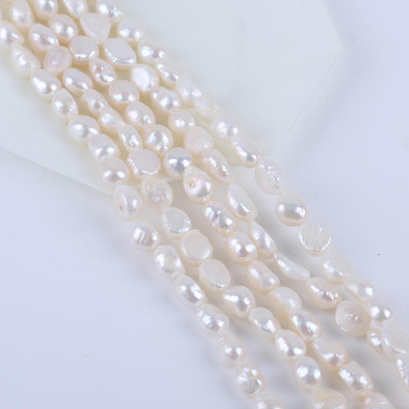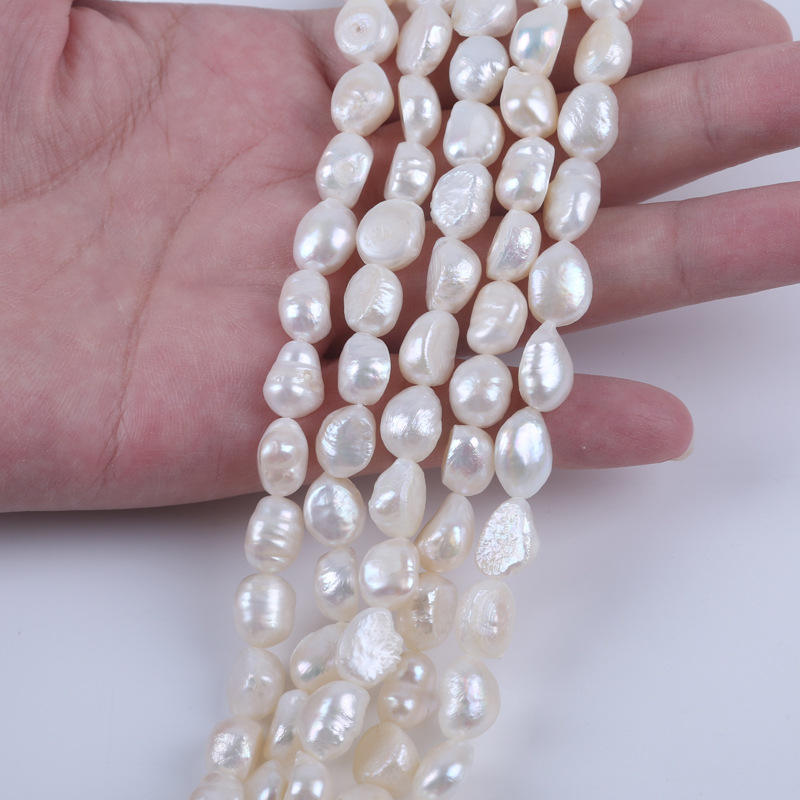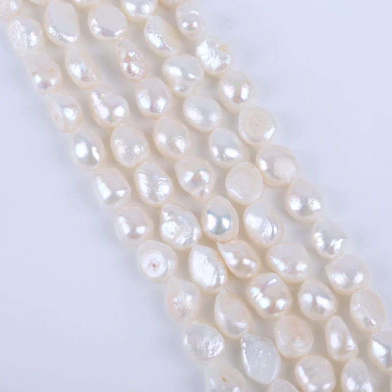สร้อยคอมุกน้ำจืดธรรมชาติจูจี้ วัสดุทำเครื่องประดับ DIY ขนาด 9-10 มม. สีขาว รูตรง สองด้าน แสงสว่าง ขายส่ง