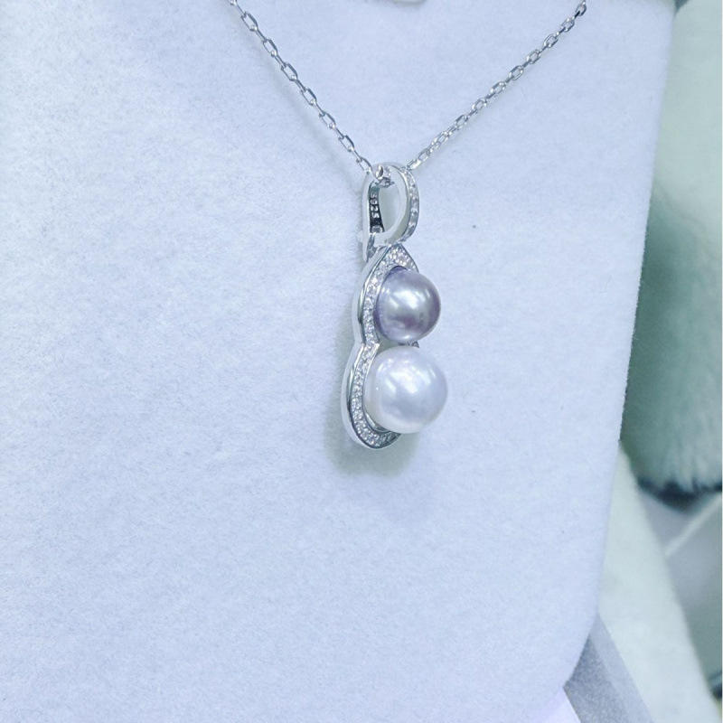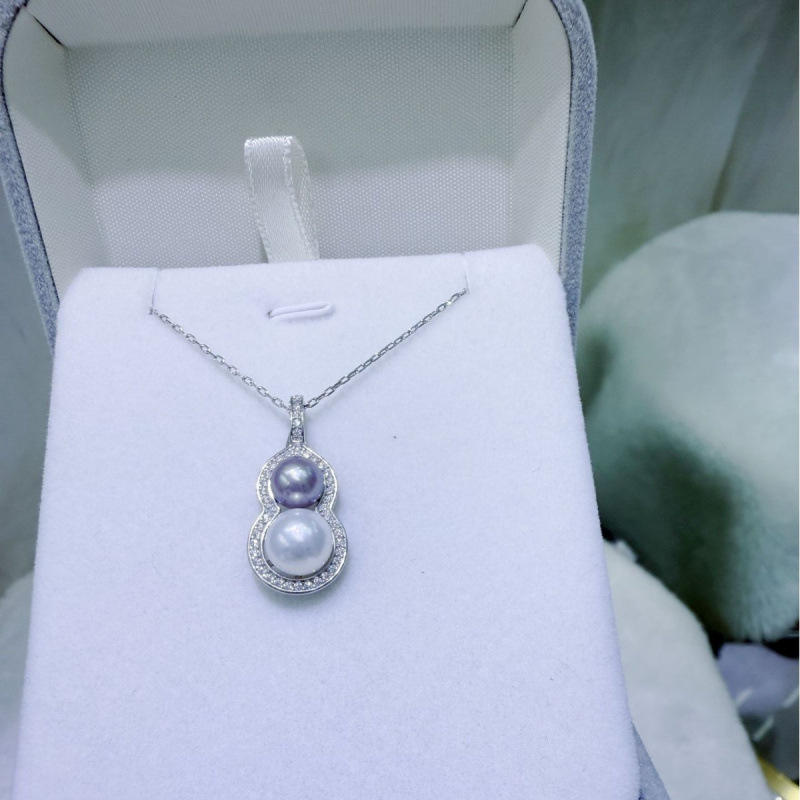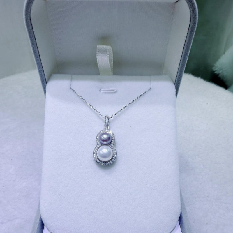 สร้อยคอมุกธรรมชาติจูจี้ 5-8 มม. ทรงกลม ไร้ตำหนิ สีออโรร่า เงินแท้ พร้อมจี้ทรงน้ำเต้า สไตล์ทันสมัยสำหรับผู้หญิง