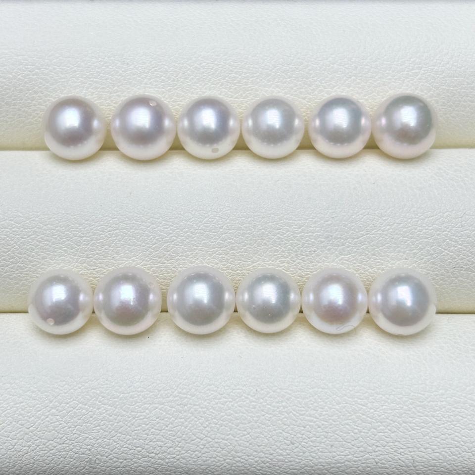 ไข่มุกอะโกย่าน้ำทะเลธรรมชาติจูจี้ ขนาด 7.5-8 มม. สีขาวสว่างสดใส ลูกปัดแบบหลวม ตำหนิเล็กน้อย ผิวเรียบเนียน สำหรับงานประดิษฐ์