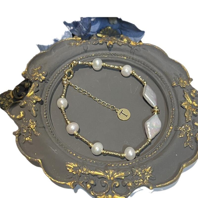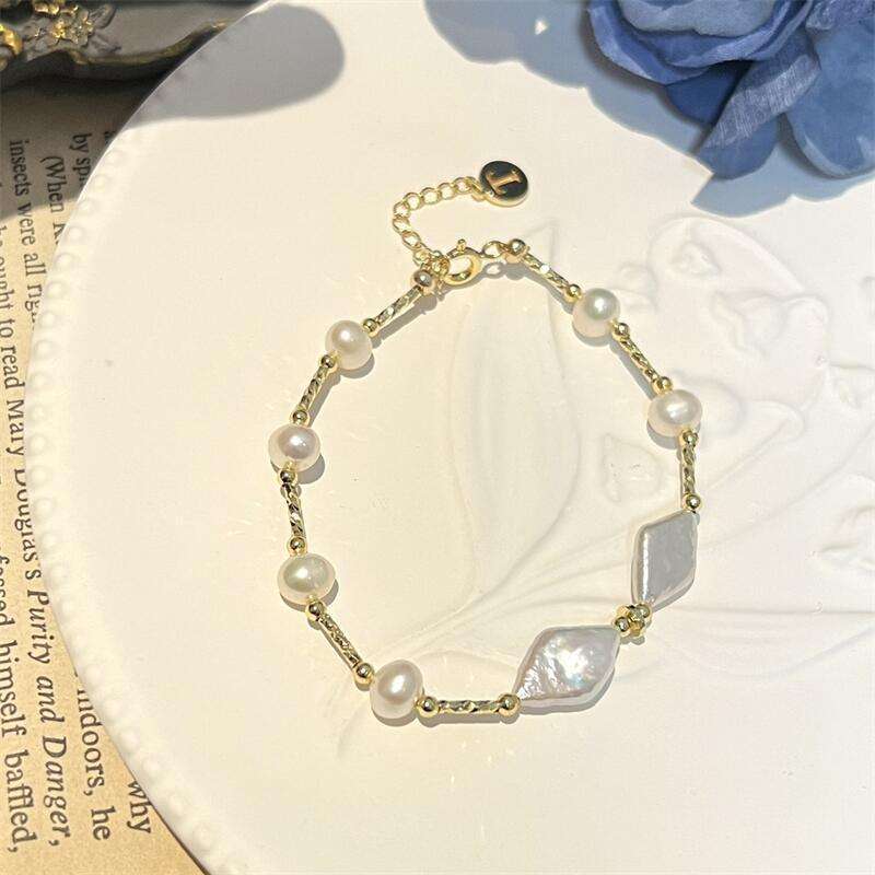 สร้อยข้อมือไข่มุกทรงบาร็อค Zhuji สไตล์หรูหราใหม่ ดีไซน์เฉพาะตัว ทอง 14K พร้อมสายโซ่และจี้ประดับ