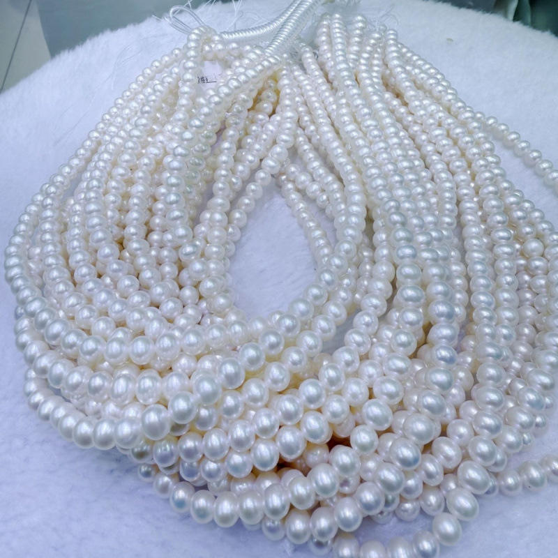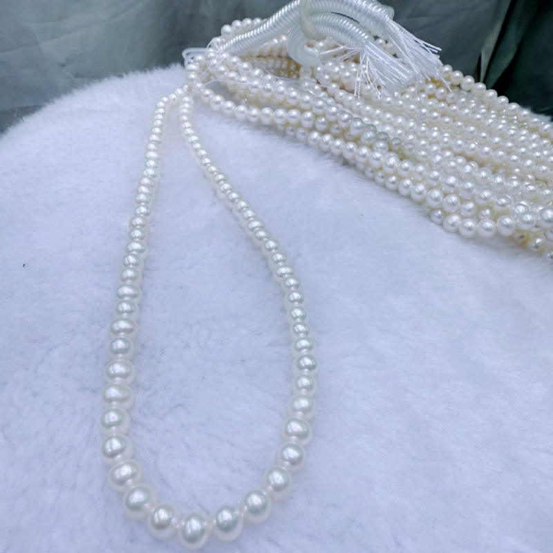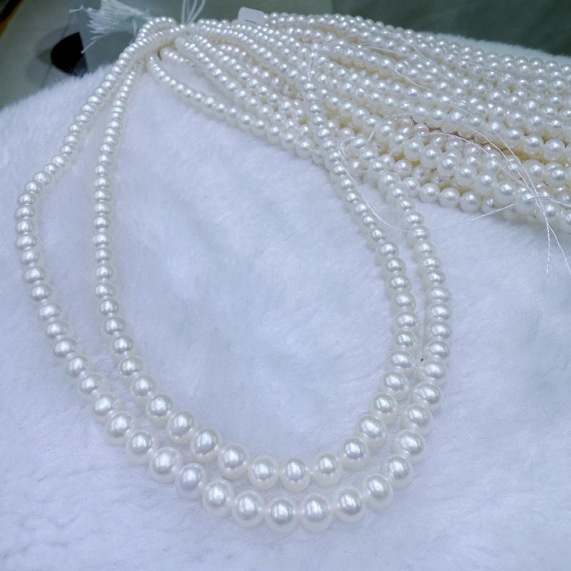 ลูกปัดน้ำจืดสีชมพูขนาด 6-7 มม. ของผู้ผลิตจูจี้ เพิร์ล สำหรับงาน DIY แบบกึ่งสำเร็จรูป จำหน่ายราคาใกล้เคียงราคาขายส่ง มีหลายขนาดและหลายสี
