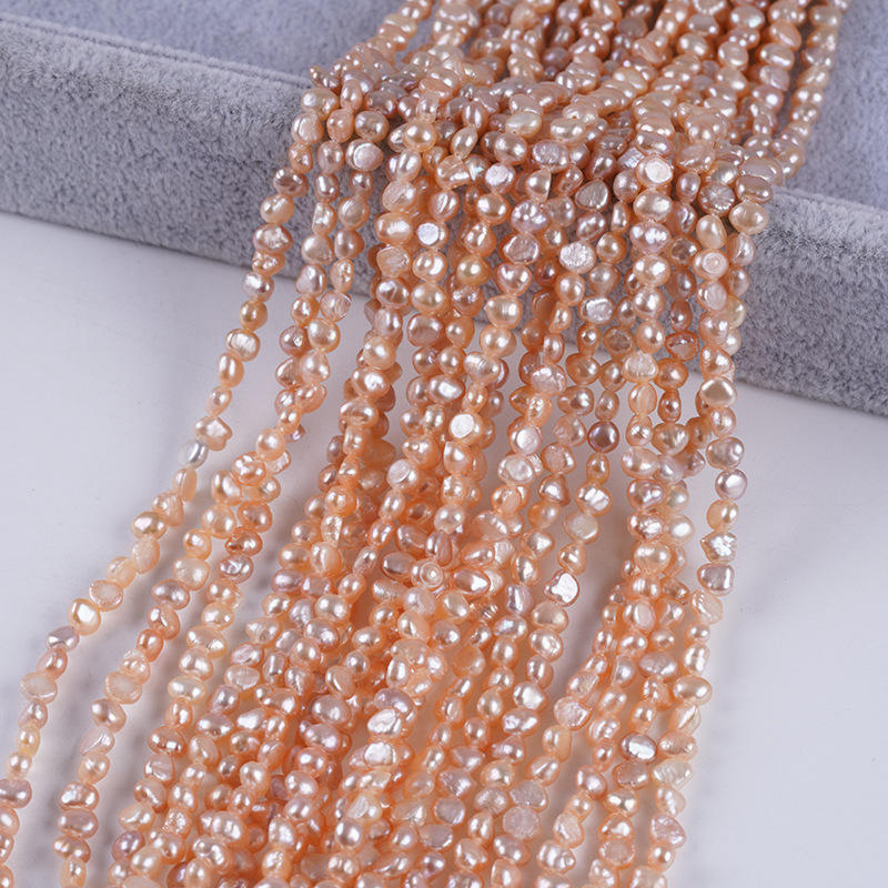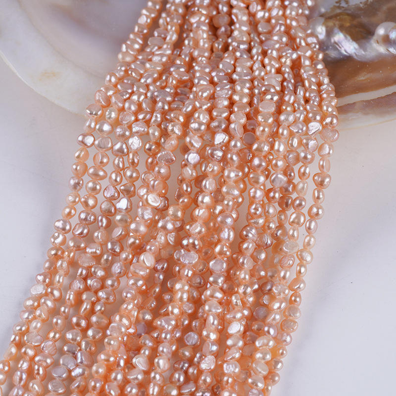 โปรโมชั่นไข่มุกจูจี้ สร้อยคอไข่มุกน้ำจืดทรงบาร็อค 3-4 มม. สีขาวธรรมชาติ ชมพูอ่อน สองด้าน รูด้านข้าง ขายส่ง สำหรับทำสร้อยคอ DIY