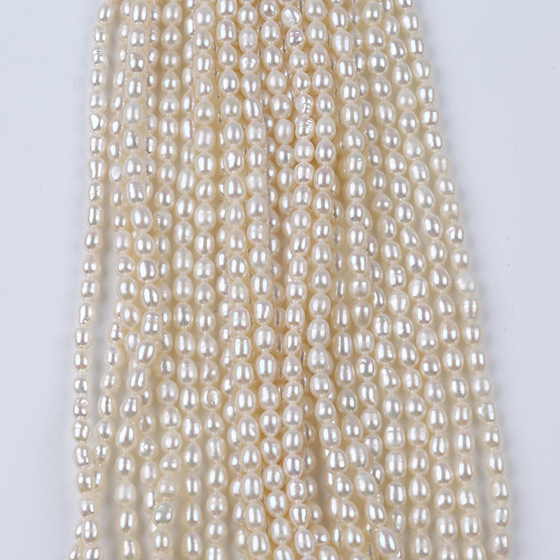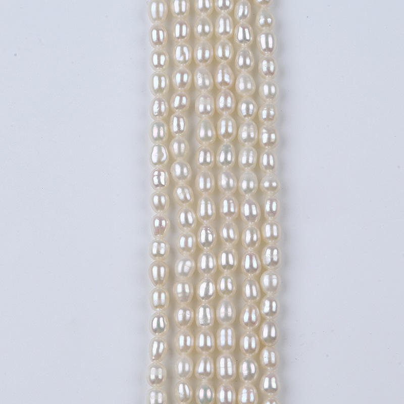 สร้อยคอไข่มุกน้ำจืดทรงบาร็อคสองด้าน ขนาด 3-4 มม. สีขาว/สีธรรมชาติ รูปทรงไม่สม่ำเสมอ สำหรับงาน DIY จาก Zhuji Pearl Wholesale