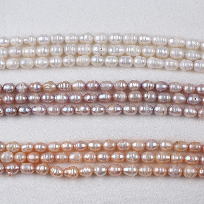 ไข่มุกจูจี้ขายส่ง ไข่มุกน้ำจืดธรรมชาติ ขนาด 7-8 มม./8-9 มม./9-10 มม. สีขาว ผงสีม่วง รูปทรงข้าวสาร ไข่มุกหลากสี