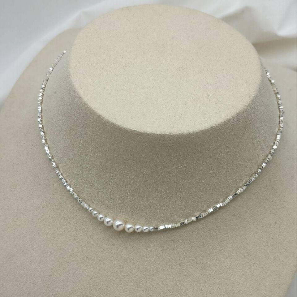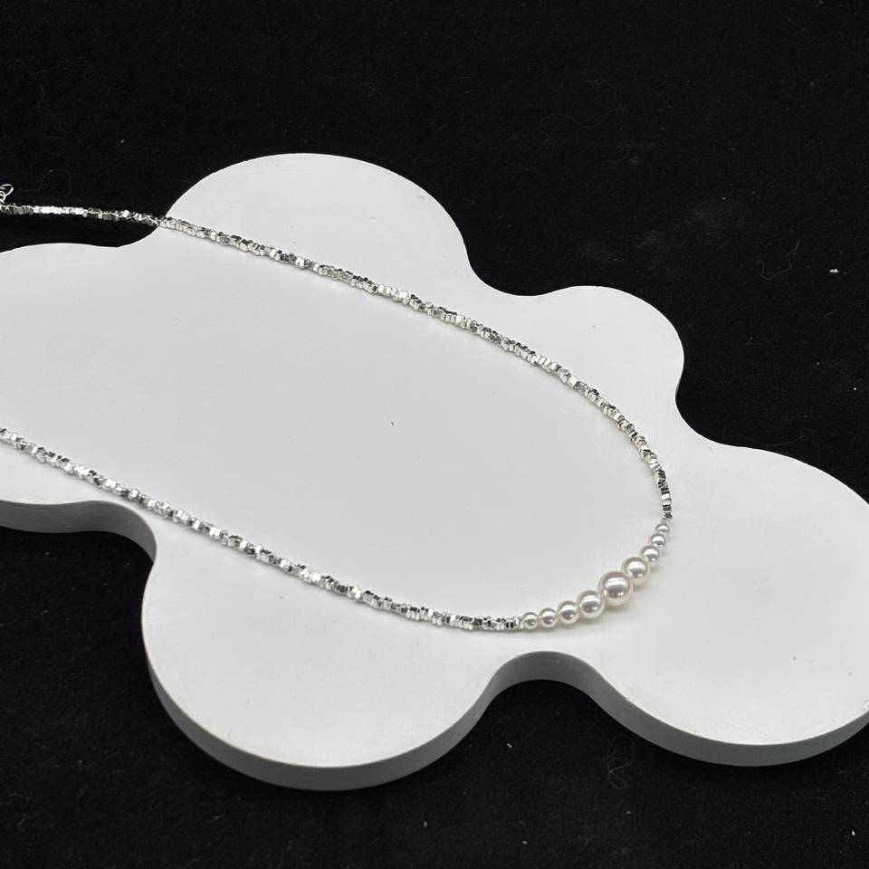 สร้อยคอไข่มุกน้ำจืดสีขาวธรรมชาติ 3-4 มม. ของ Zhuji Pearl สำหรับผู้หญิง พร้อมสร้อยคอชุบทอง 14k และจี้ไข่มุกสีขาวธรรมชาติ