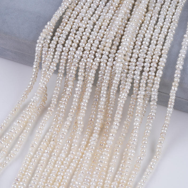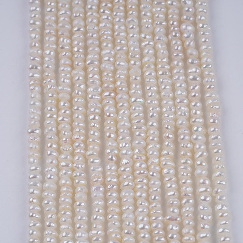 ไข่มุกน้ำจืดธรรมชาติ 3-3.5 มม. รูปทรงแบน สีขาว สำหรับทำเครื่องประดับ DIY ขายส่งจาก Zhuji Promotion