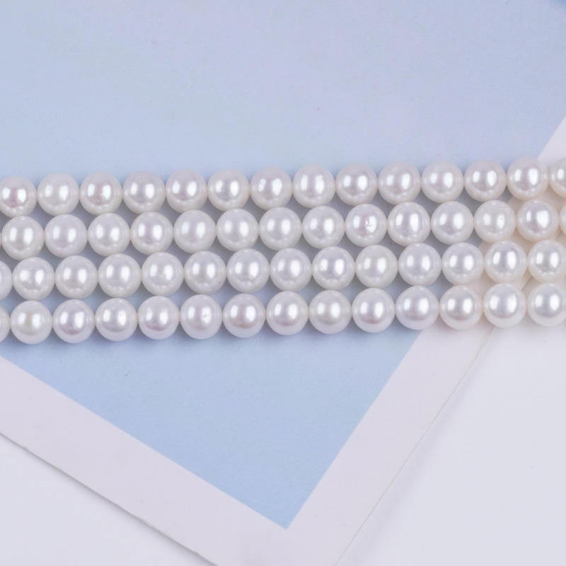 สร้อยคอมุกน้ำจืดจูจี้ 5-5.5 มม. ลูกปัดกลมสีขาว ลูกปัดกึ่งสำเร็จรูปแบบร้อย ไข่มุกสีขาวธรรมชาติ ขายส่ง