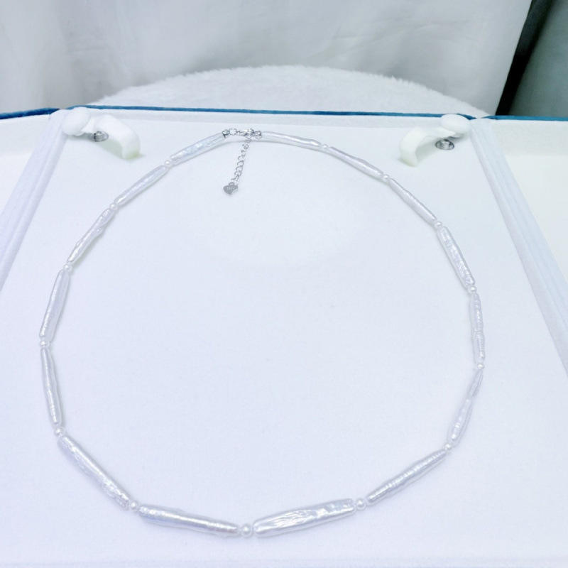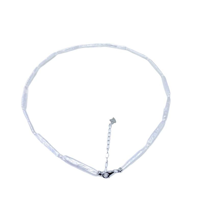 สร้อยคอไข่มุกน้ำจืดทรงบาร็อคสีเงินธรรมชาติจากทะเลสาบจูจี้ซานเซีย พร้อมตัวล็อคแบบหางเงินแท้