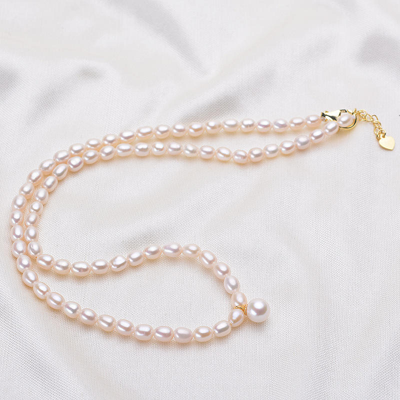 สร้อยคอมุกน้ำจืดธรรมชาติจากทะเลสาบจูจี้ซานเซีย ขนาด 4-5 มม. เงางาม ไร้ตำหนิ รูปทรงกระดูกไหปลาร้า ขายส่ง