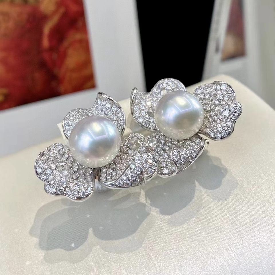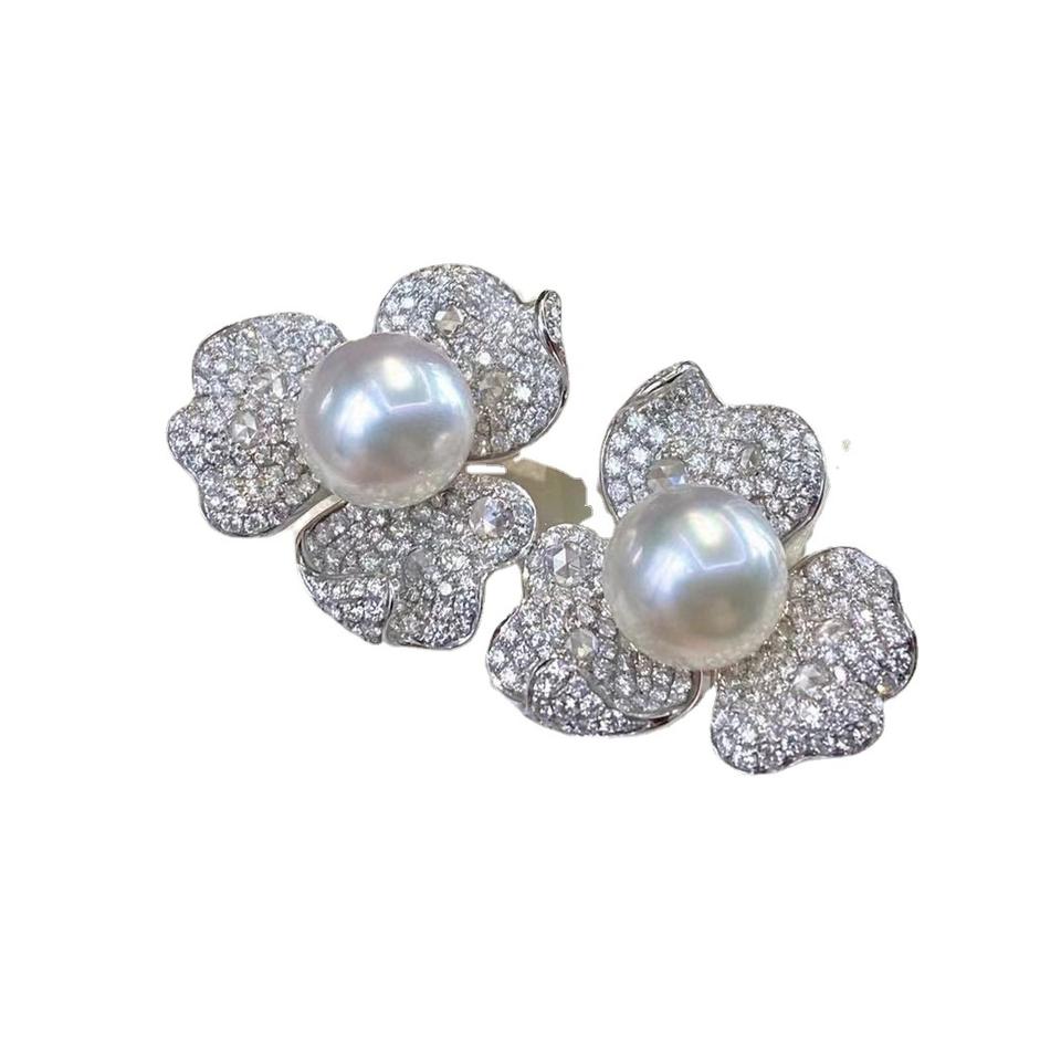ต่างหูมุกน้ำจืดทรงดอกไม้เรียบง่ายทันสมัยจากจูจี้ ประดับมุกเอดิสันเงางาม
