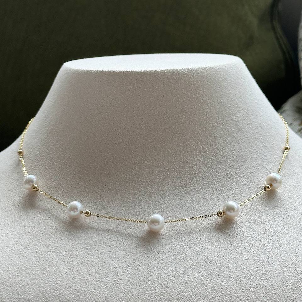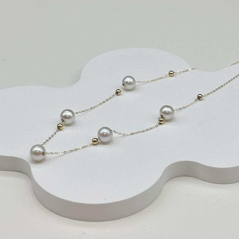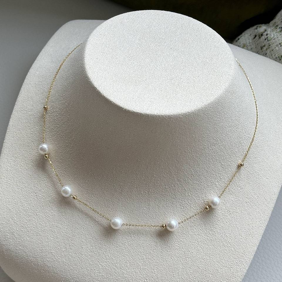 สร้อยคอมุกน้ำจืดแบบเรียบง่ายและสง่างาม ดีไซน์หัวเข็มขัดดอกคามิลเลีย ขายส่งสำหรับคุณแม่