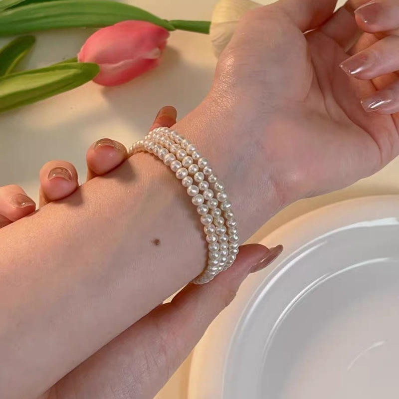 สร้อยข้อมือไข่มุกน้ำจืดขนาดเล็ก 3-4 มม. หลายชั้น ประกายออโรร่า สวยงาม หรูหรา ของขวัญวันเกิด