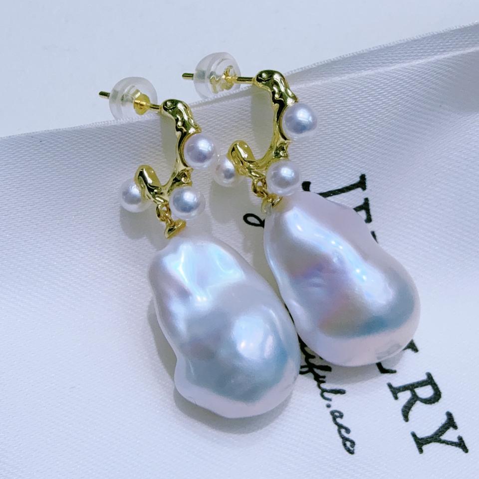 ต่างหูเงินแท้สไตล์ฝรั่งเศสย้อนยุค ดีไซน์หรูหรา รูปทรงตัว C ประดับมุกน้ำจืดหลากสีสัน ดีไซน์ทันสมัย