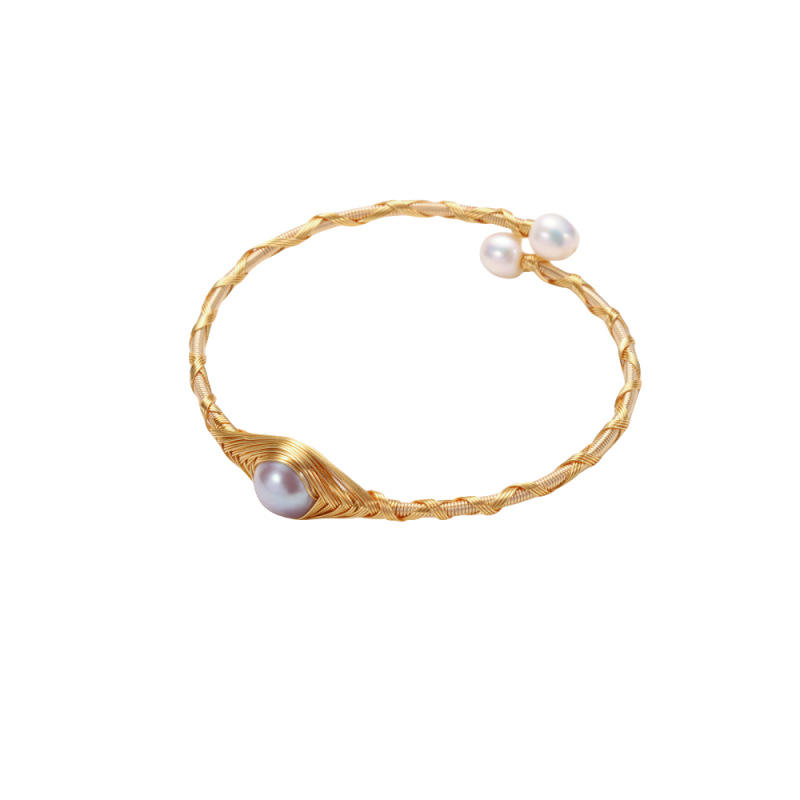 สร้อยข้อมือไข่มุกแท้ทรงบาโรก Zhuji Tamsui สำหรับผู้หญิง งานแฮนด์เมด ระดับไฮเอนด์ แบบเปิด ห่อไข่มุกแท้ใหม่