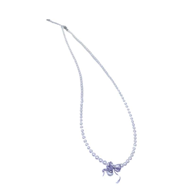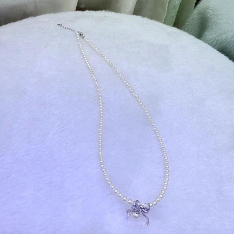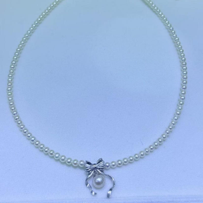 สร้อยคอมุกน้ำจืดดีไซน์ผีเสื้อสไตล์เรโทรทันสมัยจาก Zhuji ขนาด 3-4 มม. ตัวล็อคเงินแท้พร้อมสายแบบฮาร์เบอร์