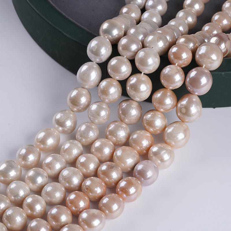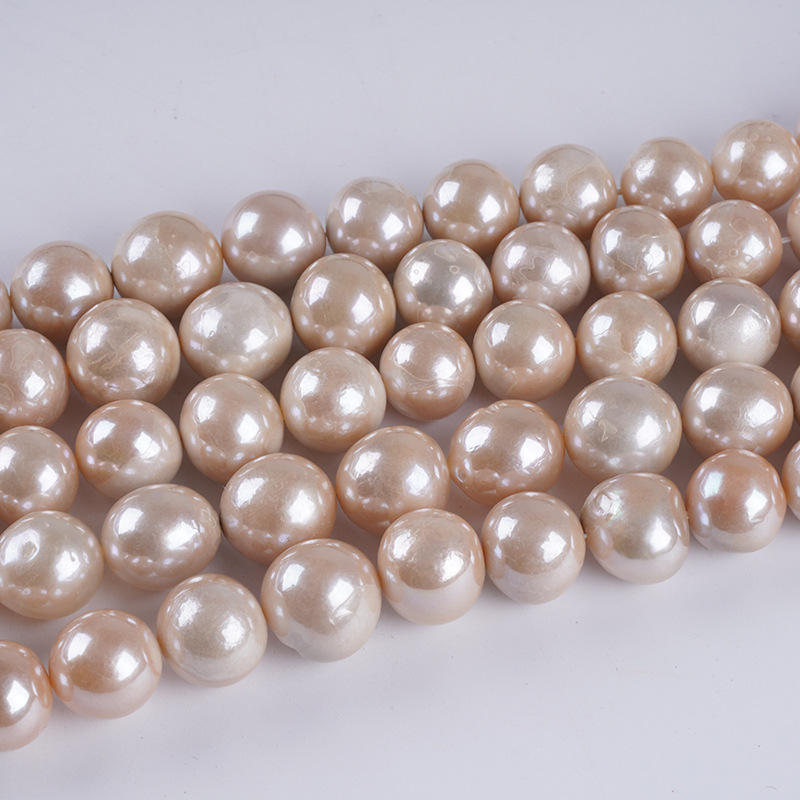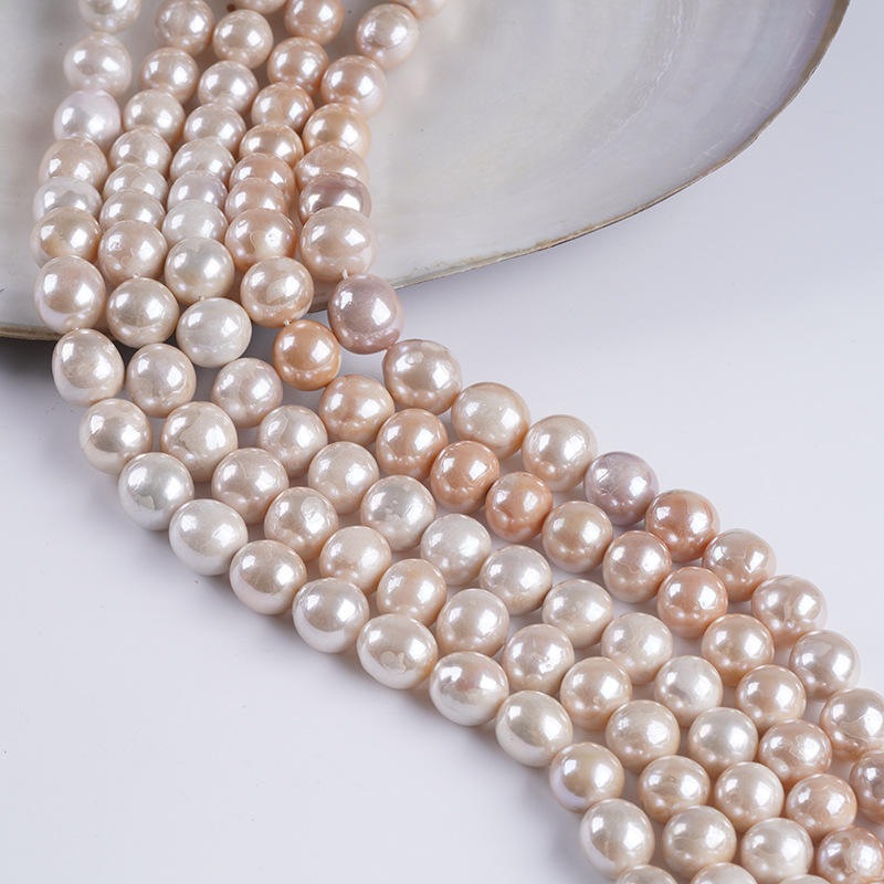 ไข่มุกน้ำจืดทรงกลมสีขาวขนาด 12-14 มม. ของ Zhuji Wholesale อุปกรณ์กึ่งสำเร็จรูปเคลือบเงาแบบมันวาว