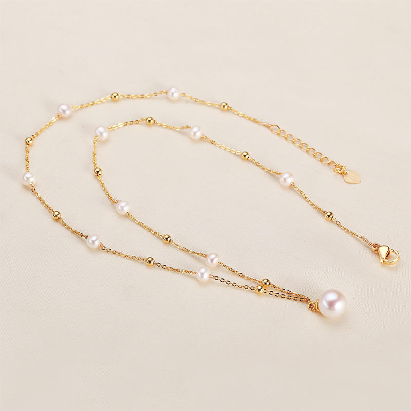 สร้อยคอจี้มุกน้ำจืดเอ็ดดิสันจากจูจี้ ขายส่ง หุ้มด้วยทอง 18K ดีไซน์ท้องฟ้าเต็มดาว เครื่องประดับสุดหรู ไอเดียของขวัญที่สมบูรณ์แบบ
