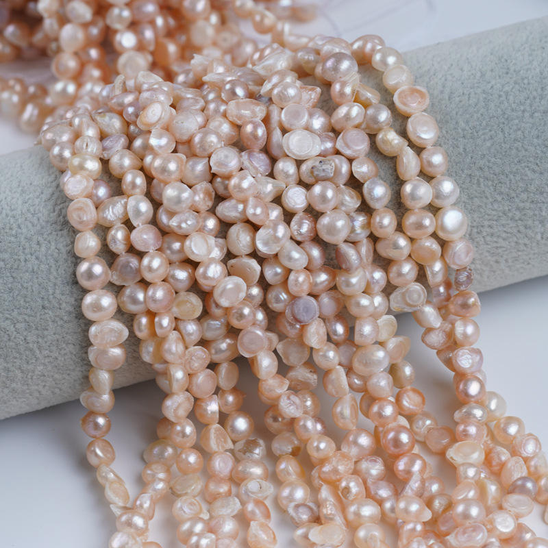 Zhuji Wholesale Natural Freshwater Pink Pearl Necklace 5-6mm Natural Two Sided Light Semi Finished Horizontal Hole Colorful