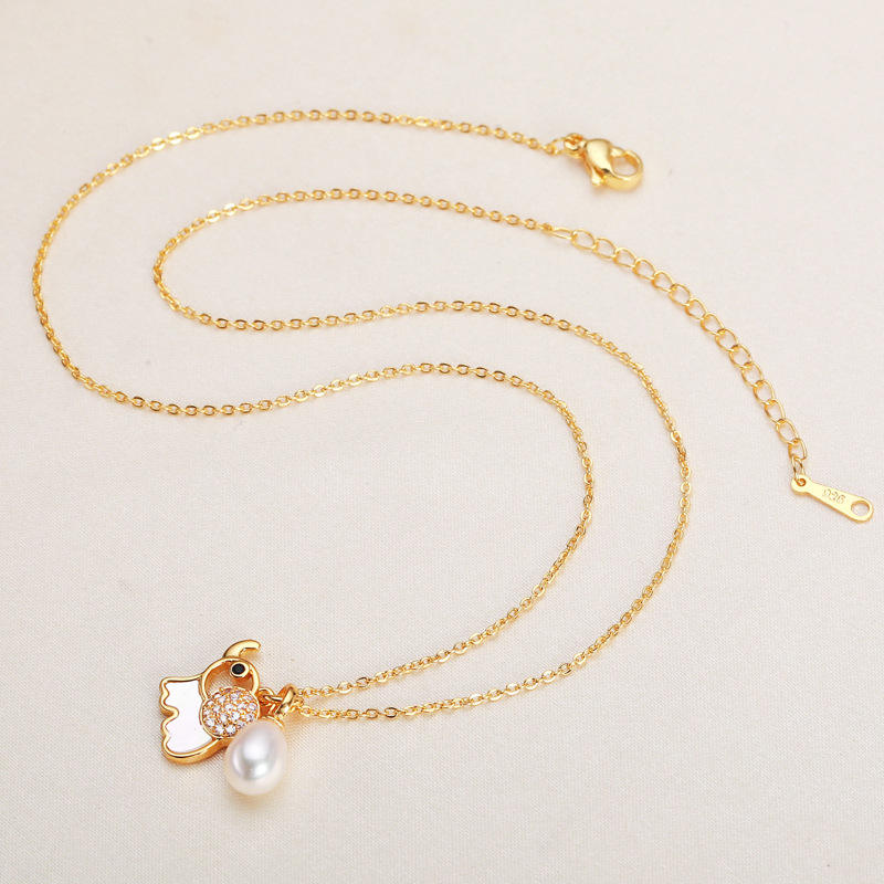สร้อยคอขายส่งจูจี้พร้อมจี้มุกน้ำจืด สร้อยคอทรงคานทรงตัว สร้อยคอประดับกระดูกไหปลาร้า สไตล์ผู้หญิง น่ารัก ดูมีเสน่ห์