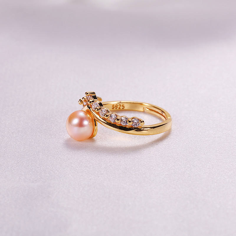 แหวนมุกประดับเพชรซิคอนแบบไมโครอินเลย์ ดีไซน์มงกุฎสไตล์ฝรั่งเศส ปรับขนาดได้ งานแฮนด์เมด ขายส่ง สำหรับผู้หญิงจากจูจี้