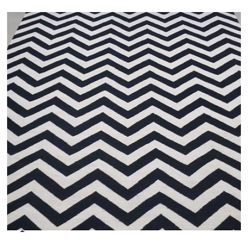 Zick Zack พรมขนสัตว์100% ปูพื้นสำหรับตกแต่งบ้านทรงสี่เหลี่ยมพรมขนสัตว์สีดำสีขาวสำหรับผู้ใหญ่