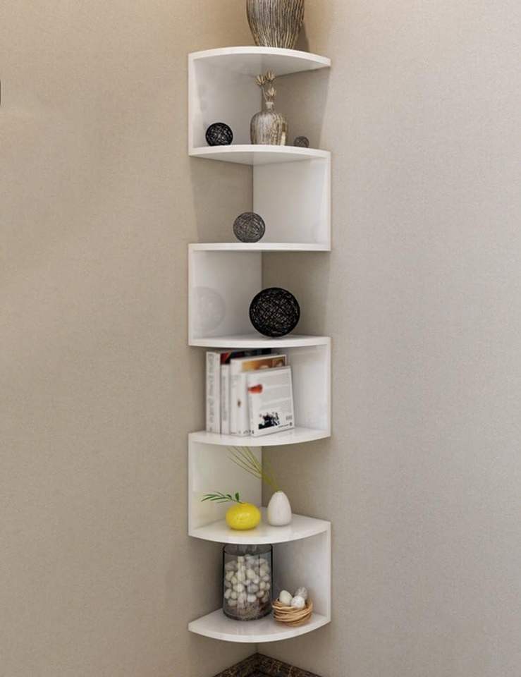ชั้นวางของติดผนังรูปตัวซิกแซก ทำจากไม้เอ็นจิเนียร์วูด สำหรับตกแต่งห้องนั่งเล่นและห้องนอน (MDF- ไม้ไฟเบอร์ความหนาแน่นปานกลาง) ของตกแต่งมุมห้อง