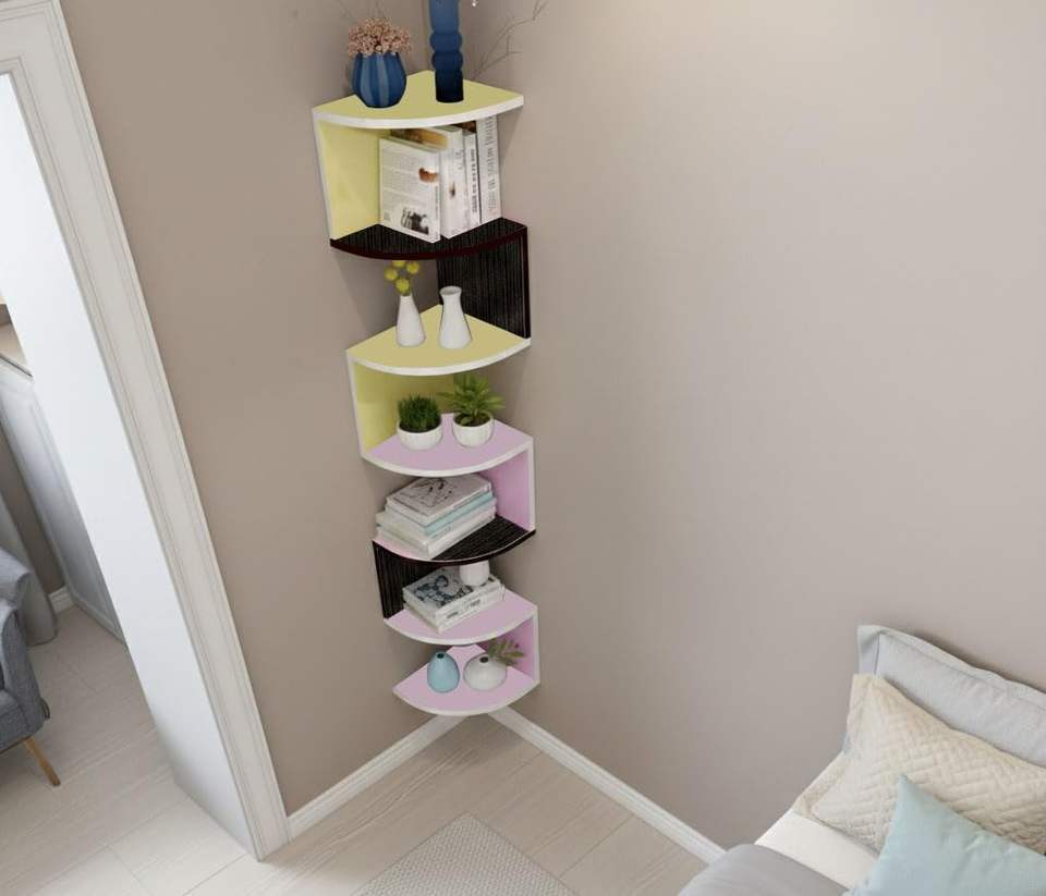 ชั้นวางของติดผนังรูปตัวซิกแซก ทำจากไม้เอ็นจิเนียร์วูด สำหรับตกแต่งห้องนั่งเล่นและห้องนอน (MDF- ไม้ไฟเบอร์ความหนาแน่นปานกลาง) ของตกแต่งมุมห้อง