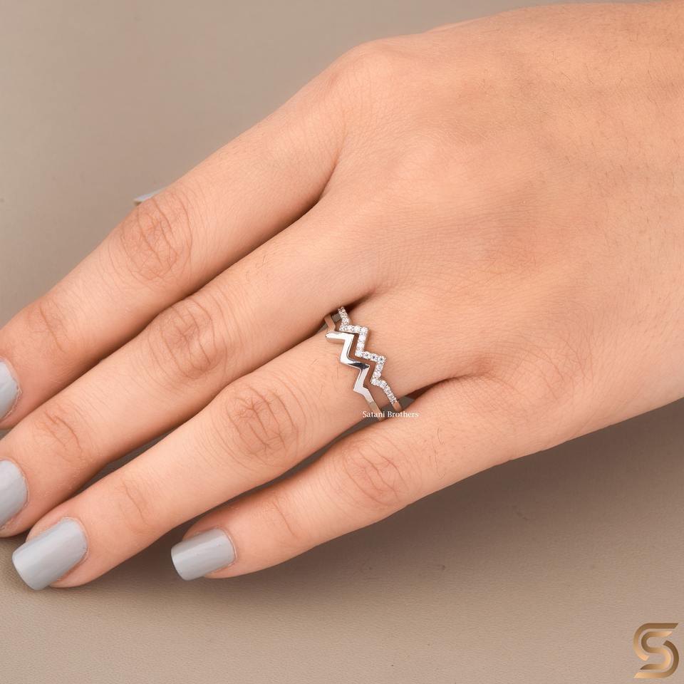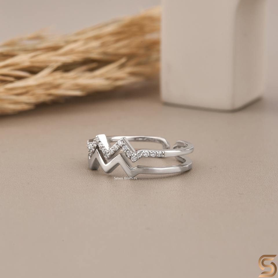 แหวนมอสซาไนต์รูปซิกแซก วงแหวนเชฟรอนแบบเปิด 0.10 กะรัต แหวนซ้อนได้ เงินแท้ 925 แบรนด์ซาตานิ บราเธอร์ส