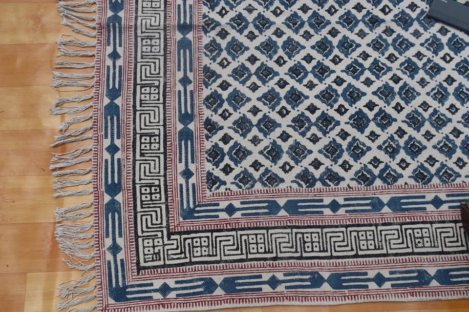 พรมลายซิกแซ็กสำหรับตกแต่งสวนหรือใช้ในรถยนต์วัสดุผ้าฝ้าย100% พิมพ์ด้วยมือลายดีไซน์เนอร์