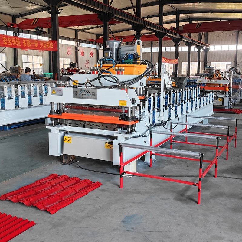 Zimbabwe เครื่องขึ้นรูปม้วนแผ่นหลังคา762และกระเบื้องเหล็กเคลือบ760อัตโนมัติสองชั้น