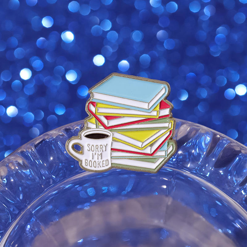 เข็มกลัดโลหะผสมสังกะสีเคลือบสีแบบอบลายหนังสือและแก้วกาแฟ ดีไซน์การ์ตูนสร้างสรรค์ อุปกรณ์ตกแต่งเสื้อผ้าอัจฉริยะ รางวัล ตราสัญลักษณ์โลหะ