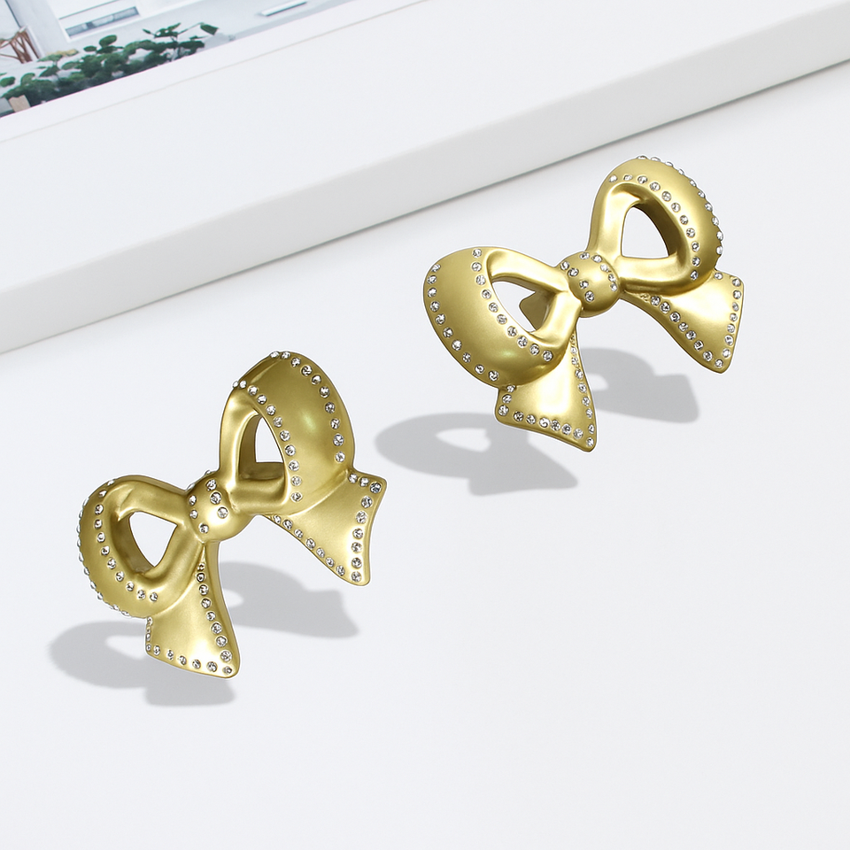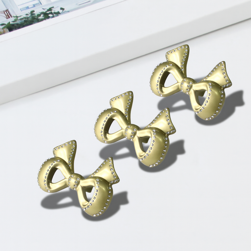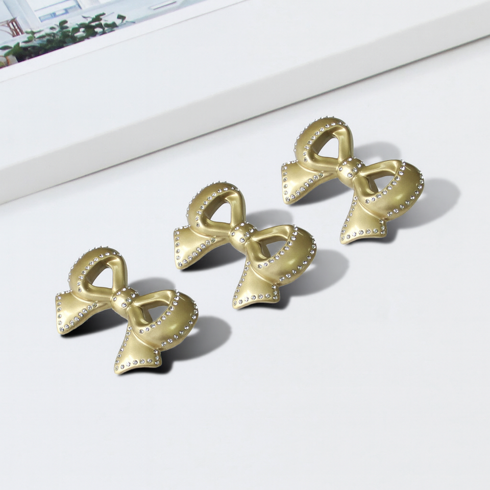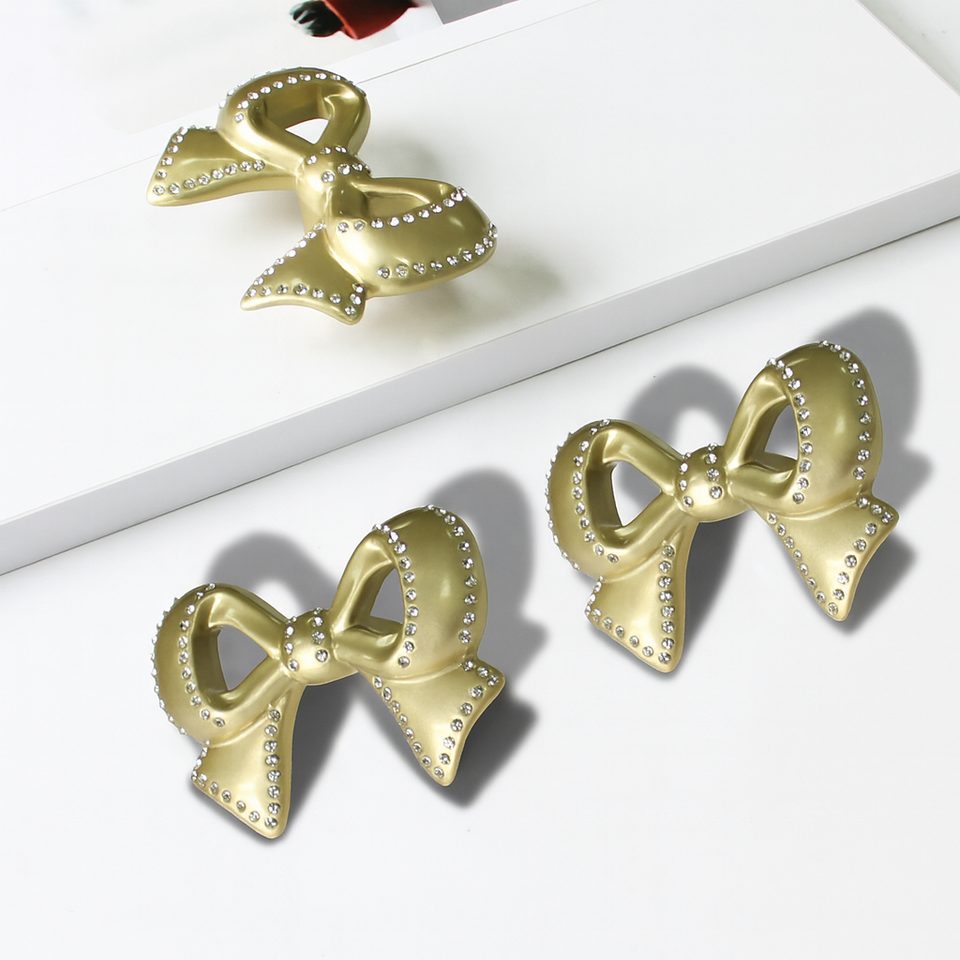 มือจับตู้รูปทรงโบว์ วัสดุโลหะผสมสังกะสี ขอบคริสตัล ทันสมัย ทนทาน เป็นมิตรกับสิ่งแวดล้อม สำหรับตู้ครัว ตู้เสื้อผ้า ลิ้นชักห้องนอน