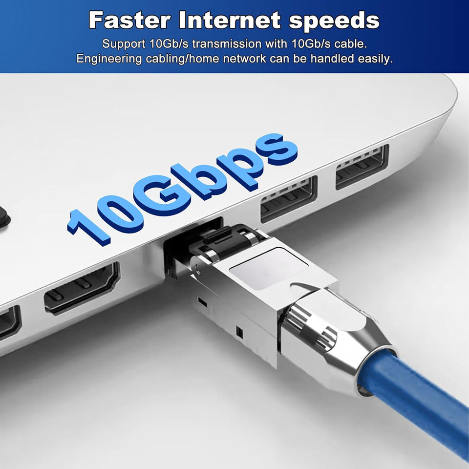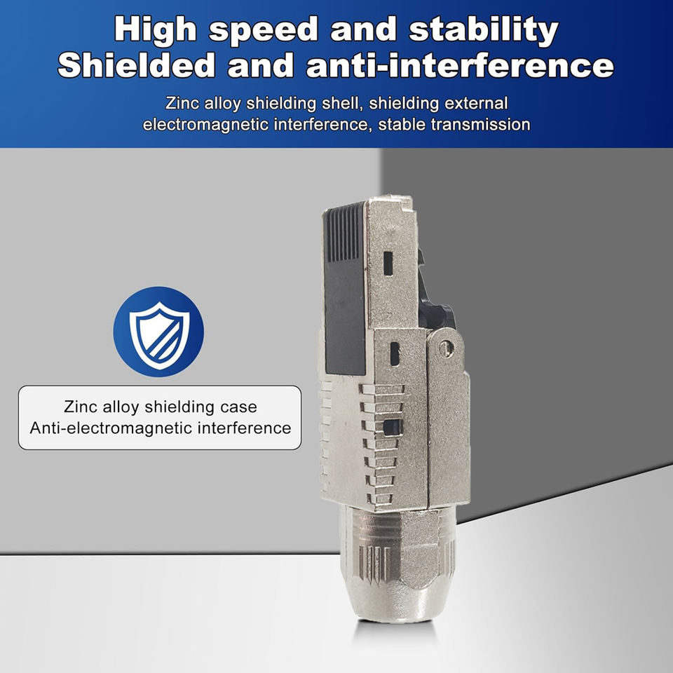 ตัวเชื่อมต่อ RJ45 แบบโลหะผสมสังกะสี STP ป้องกันสัญญาณรบกวน 8 ขา แบบติดตั้งบนแผง ไม่ต้องใช้เครื่องมือ ตัวเชื่อมต่ออีเธอร์เน็ต Cat8 ไมโครเวฟ ปลั๊กโมดูลาร์แบบไม่ต้องใช้เครื่องมือ