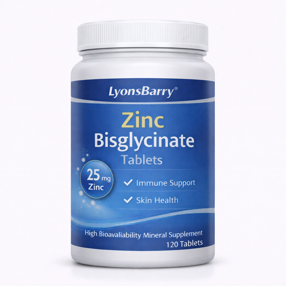ไลออนส์บาร์รี่ ซิงค์ บิสไกลซิเนต แท็บเล็ตสารต้านอนุมูลอิสระสำหรับผู้ใหญ่ เสริมสร้างภูมิคุ้มกัน สุขภาพผิว แร่ธาตุที่มีความพร้อมใช้งานสูง 100 เม็ด