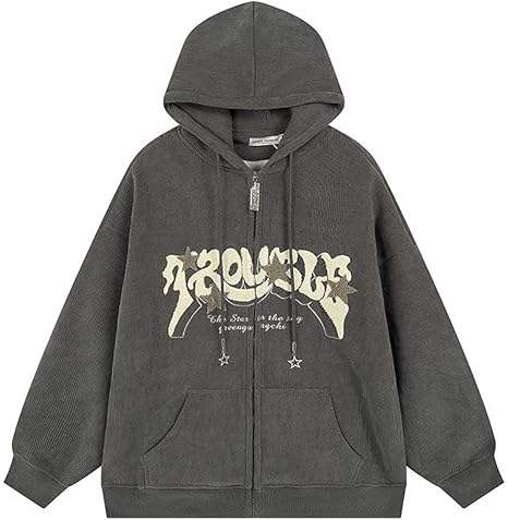 เสื้อฮู้ดซิปสำหรับผู้หญิงผู้ชาย พิมพ์ลายตัวอักษร ลายดาว กรันจ์ เสื้อแจ็คเก็ตผ้าลูกฟูกมีฮู้ด