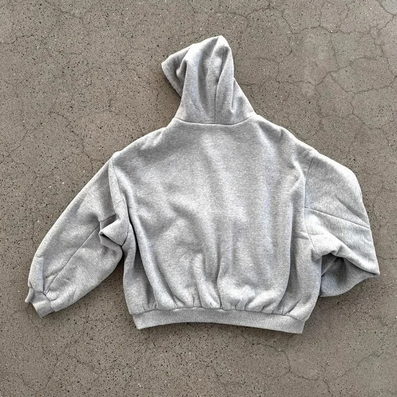 เสื้อฮู้ดมีซิปสำหรับผู้ชายผ้าซักกรดแบบวินเทจผ้าโพลีเอสเตอร์/ ผ้าฝ้ายสำหรับฤดูหนาว500GSM โลโก้ออกแบบได้ตามต้องการ