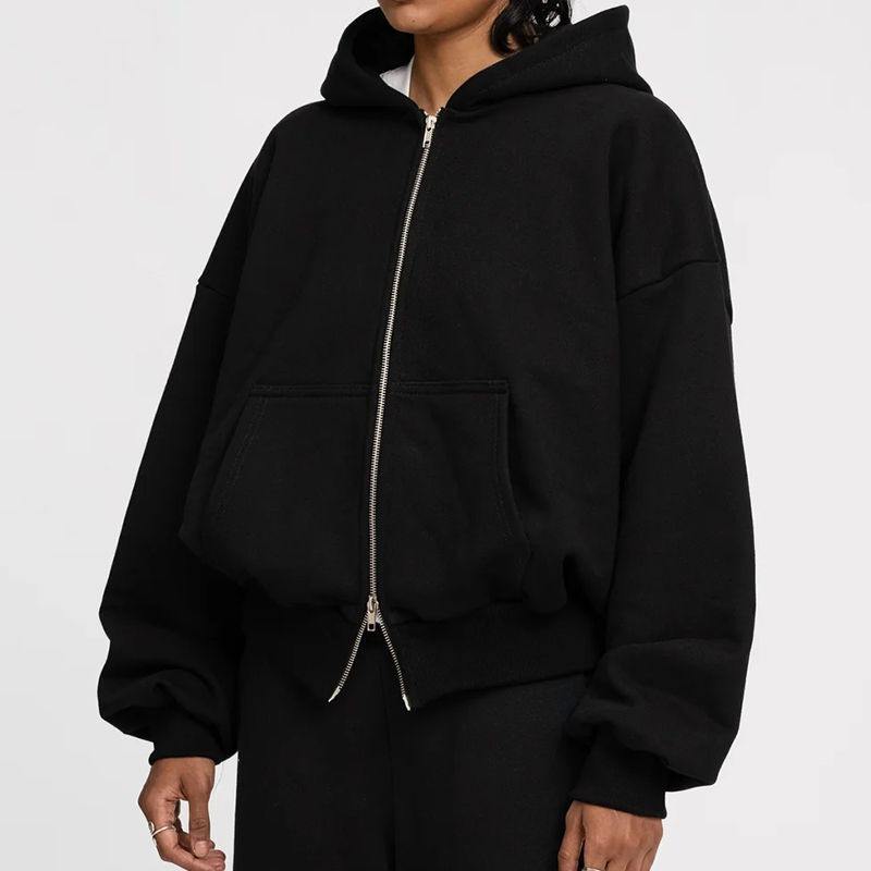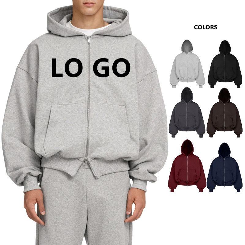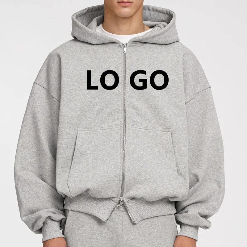 เสื้อฮู้ดดี้ทรงบ็อกซี่แบบซิป ผ้าคอตตอนหนานุ่ม 100% แบบครอปสำหรับผู้ชาย ผ้าเฟรนช์เทอร์รี่ แบบสวมหัวมีซิป