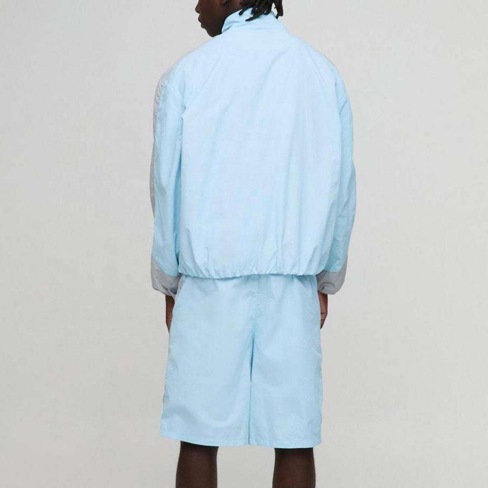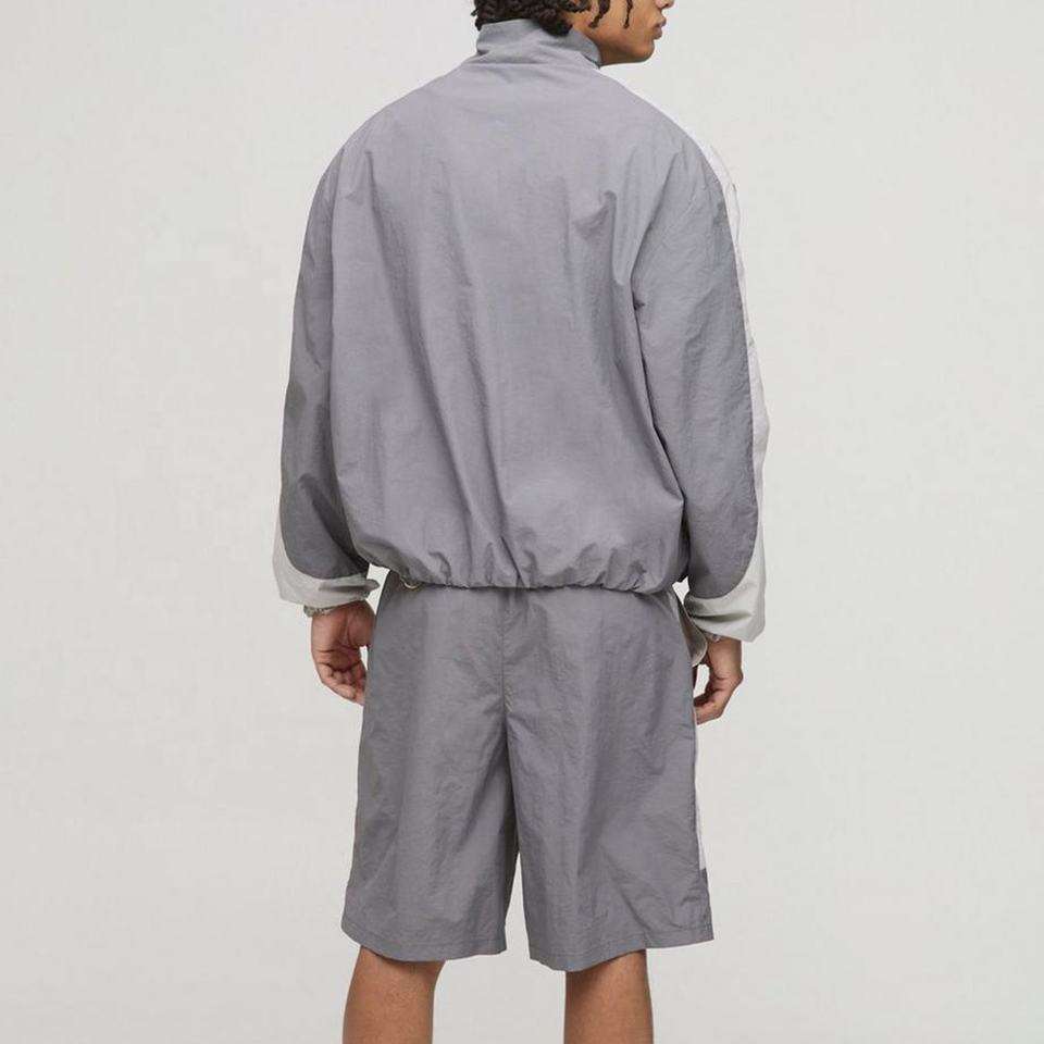 ชุดวอร์มซิปแบบนุ่ม ผ้าไนลอนยับทรงบ็อกซี่ สำหรับผู้ชายและผู้หญิง เสื้อแจ็คเก็ตและกางเกงขาสั้น ชุดกันลม