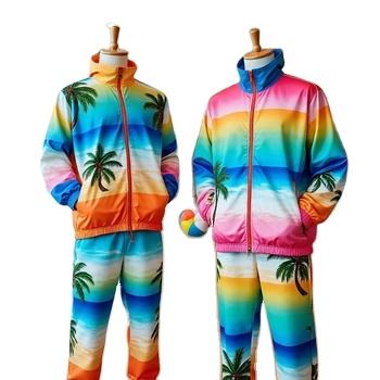 ชุดวอร์ม2ชิ้นสำหรับผู้ชายชุดวอร์มผ้าไนลอนกันลมมีซิป